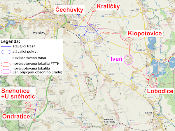Seznam pokrývaných základních sídelních jednotek vč. počtu připojovaných adres a aktuálního stavu realizace naleznete zde. Seznam vybudovaných přípojek je ke stažení zde.
